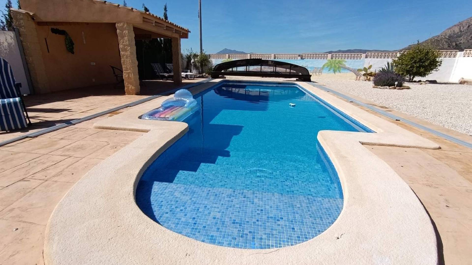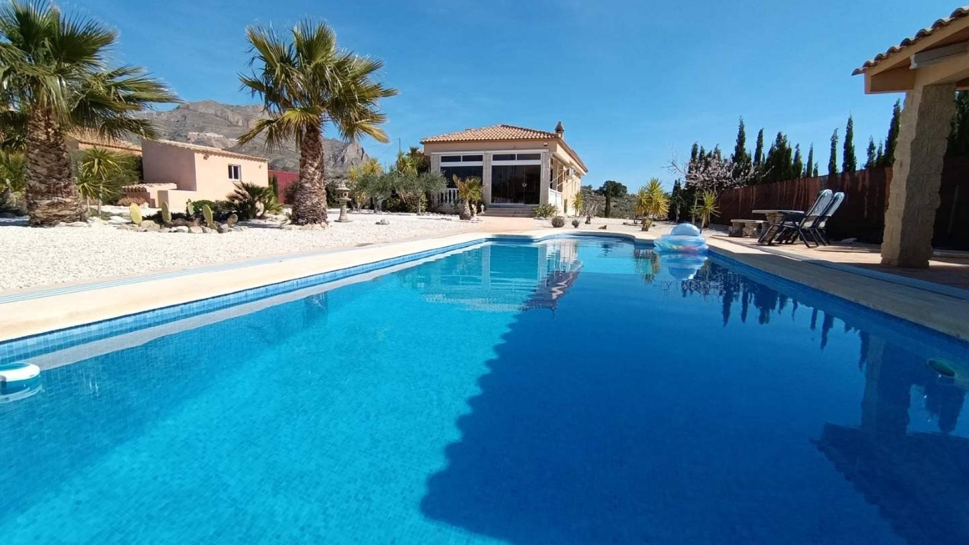 In the charming village of Macisvenda, nestled in the beautiful countryside of the Murcia region, lies this move-in ready home that effortlessly combines comfort, privacy, and quality. Macisvenda is known for its tranquility, natural beauty, and authentic Spanish atmosphere. Surrounded by rolling hills, vineyards, and almond orchards, you can enjoy space, sun, and tranquility, while amenities and charming villages are just a short distance away.