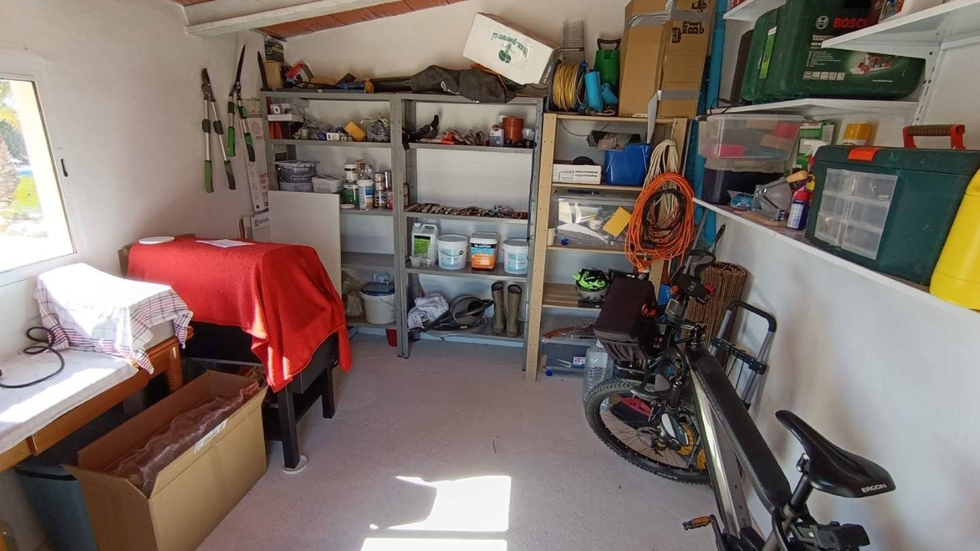 The plot also includes a spacious detached storage shed and a carport. Access to the property is via an electric gate, contributing to both comfort and security.