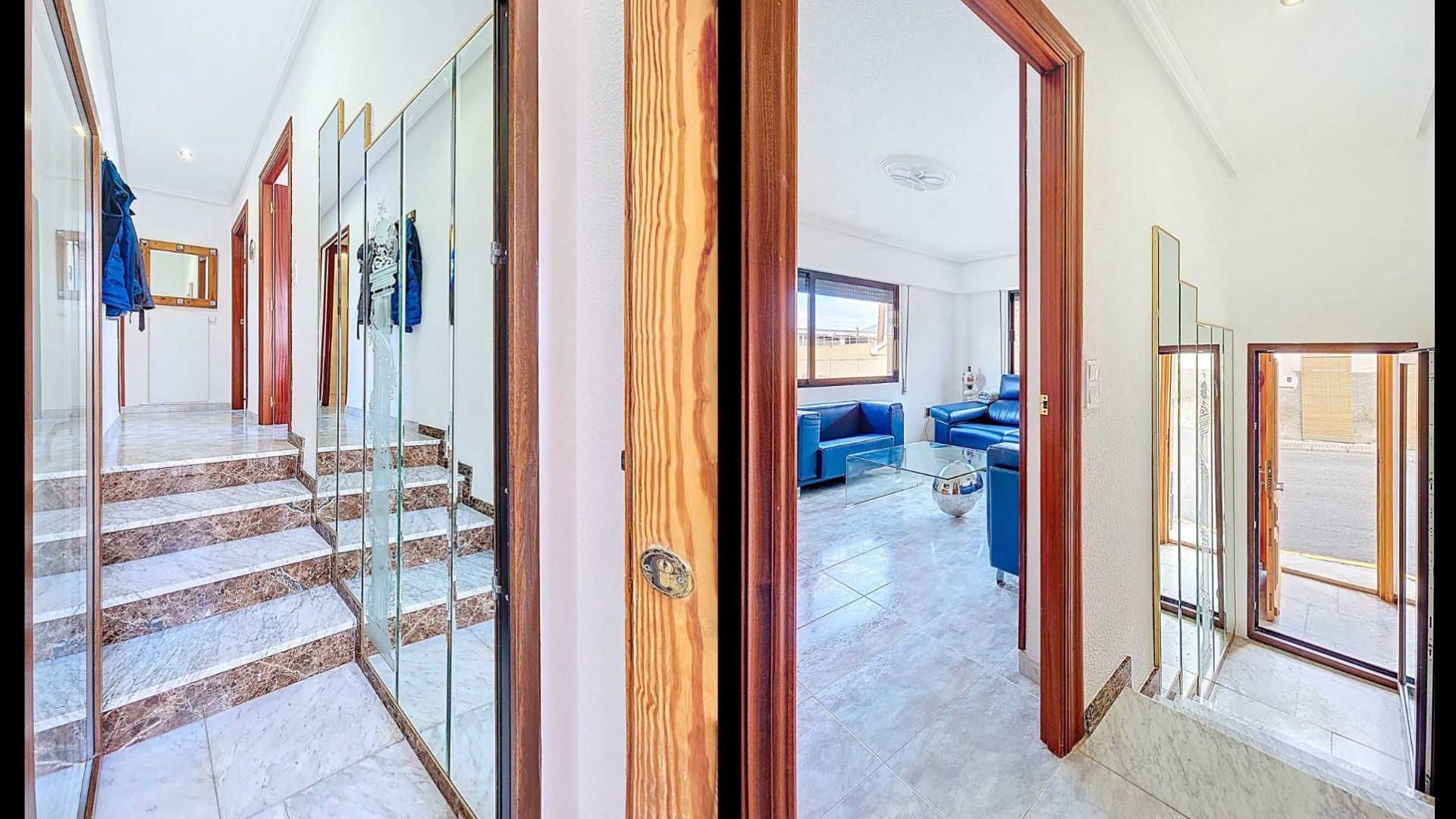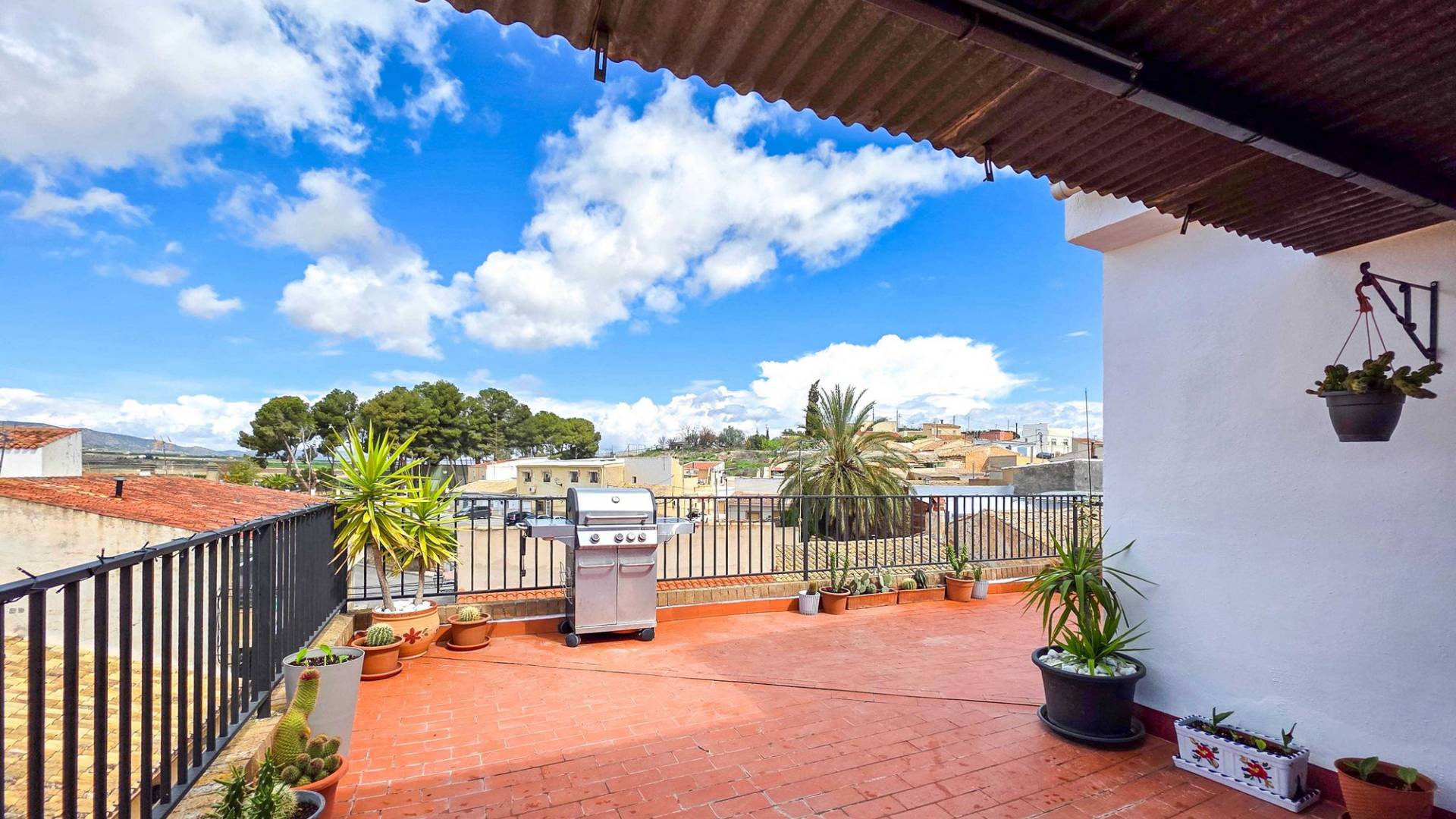 Move-in Ready Village House with Three Floors, Garage, and Spacious Rooftop Terrace This spacious corner house is spread over three floors and offers a fantastic 360-degree view of the charming village of Pinoso and the surrounding mountains. The property is centrally and quietly located in a friendly neighborhood and is ready for new residents to move in. The House – Ground Floor A hallway with an extra glass entrance door leads to the bright living room. On this floor, you’ll also find a bathroom and the kitchen with a pantry. The induction hob and oven have been recently installed. The House – First Floor This floor features three generously sized bedrooms, one of which has built-in wardrobes and another with an adjoining balcony. There is also a spacious bathroom and another pantry. The House – Second Floor The top floor boasts an impressively large rooftop terrace. You can enjoy the sun all day here, but a shaded area has also been created. The views are absolutely stunning. Prefer to sit indoors for a bit? There is a large room with a seating area and a recently installed kitchen — perfect for preparing snacks and drinks for the terrace. Bonus: A private adjacent garage (included in the price). Amenities This spacious village house offers a great opportunity to live in the beloved town of Pinoso, with all amenities within walking distance. The house is connected to electricity, sewage, and water, and the wiring has been recently updated. Infrared heating panels and a pellet stove have also been installed for colder days. The windows are equipped with screens. Pinoso Pinoso offers all daily amenities, including supermarkets, schools, a medical center, and sports facilities, along with a wide selection of restaurants. The area is known for its many walking, hiking, and cycling routes. Both Alicante and Murcia airports, as well as the beaches, are within an hour’s drive. Don’t miss this opportunity – schedule a viewing today! This property is listed exclusively, which means all documents have been checked in advance and everything is either in order or can be arranged.