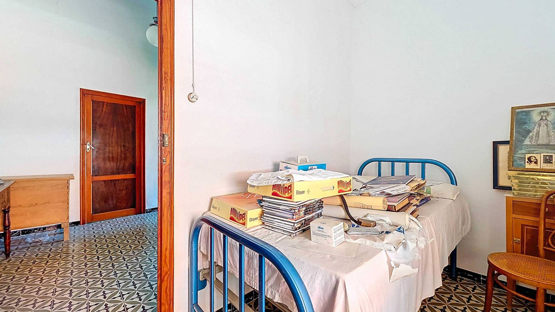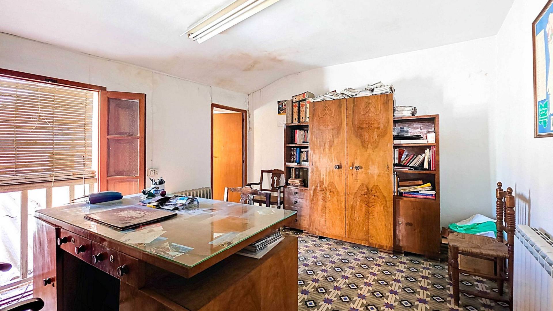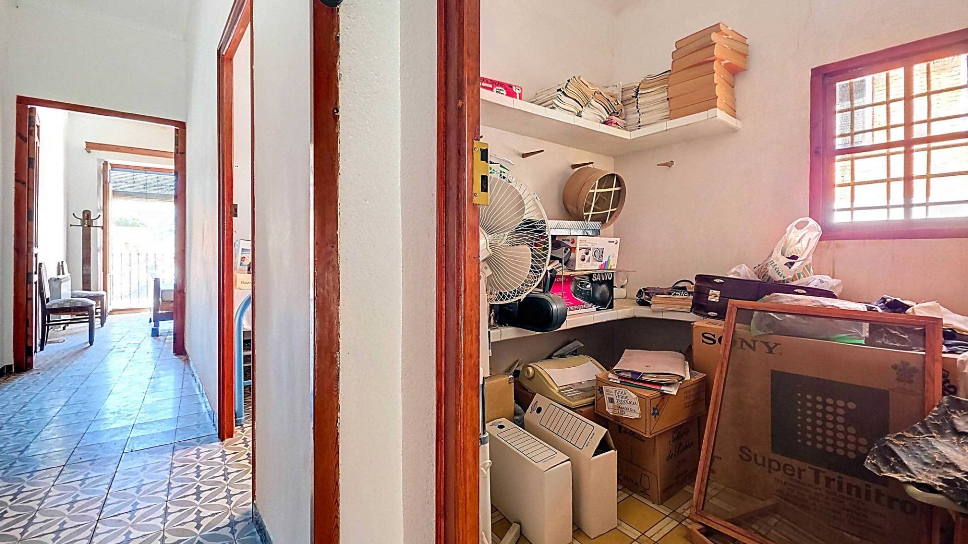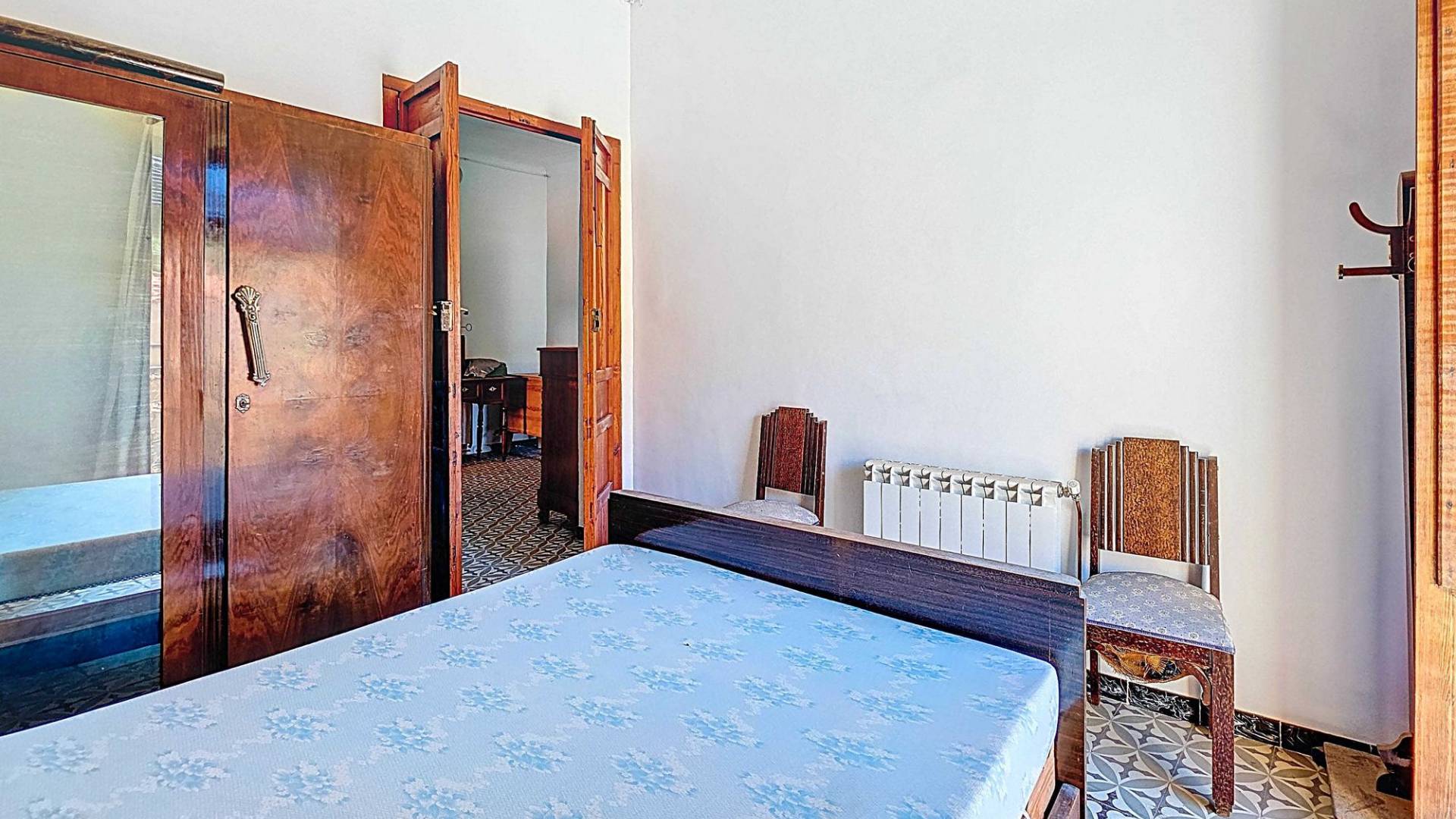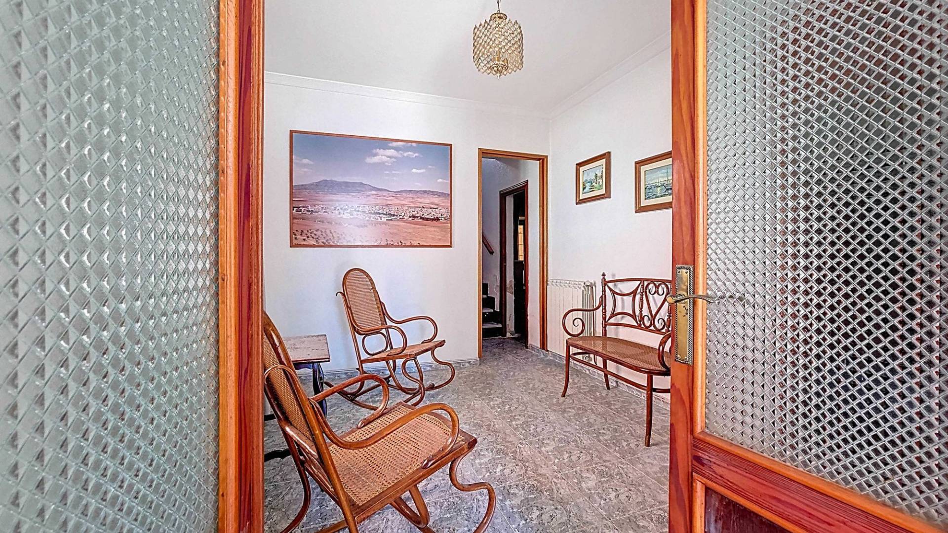 Corner Village House with Two Floors and Garage in Pinoso This very spacious corner house is spread over two floors and is centrally yet quietly located, with all amenities nearby. There is ample street parking, but the property also has its own large garage and a patio/garden room. Some renovation work is needed, but at this attractive price, it has the potential to become something truly special. The Property Ground Floor Part 1: A hallway leads to a central area that can function as an entrance hall, but it’s also spacious enough to be used as a cozy sitting area. There is a large living room with access to a bedroom, which could also be converted into a separate dining room (this room is also accessible from the hallway). The second bedroom on this floor has an ensuite bathroom and access to the large patio, which could be turned into a charming garden room (see impression in the photos). The patio is also accessible from the kitchen. Part 2: The patio has a door to the street and an adjoining room that could be converted into another bedroom or a lovely sunroom with a covered seating area facing the patio. From this room, you can access the spacious garage. A staircase in the garage leads to an additional double space that can be customized to your needs. First Floor From the first section, a marble staircase leads to the upper floor. Here you’ll find a small room, a large bedroom with ensuite bathroom, a spacious hallway with storage, and three more bedrooms, two of which have French balconies. The house is equipped with heating (radiators). Pinoso Pinoso offers all daily amenities, including supermarkets, schools, a medical center, and sports facilities, as well as a wide selection of restaurants. It’s surrounded by almond, olive, and vineyard landscapes and offers many walking, hiking, and cycling routes. Pinoso blends traditional Spanish culture, beautiful nature, and modern amenities with a delightful Mediterranean climate. Both Alicante and Murcia airports and the coast are less than an hour away. Are you the new owner who will modernize this home while preserving its authentic charm? Don’t miss this opportunity to live in the beloved Pinoso – book a viewing today! This property is listed exclusively, which means all documents have been checked in advance and everything is either in order or can be arranged.