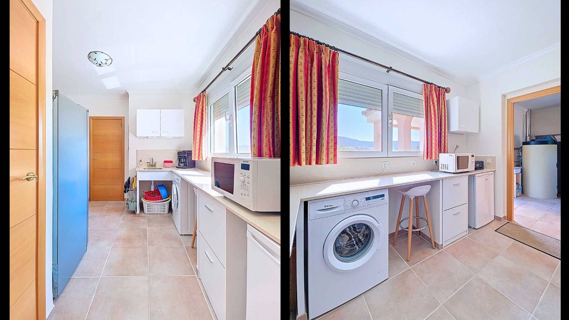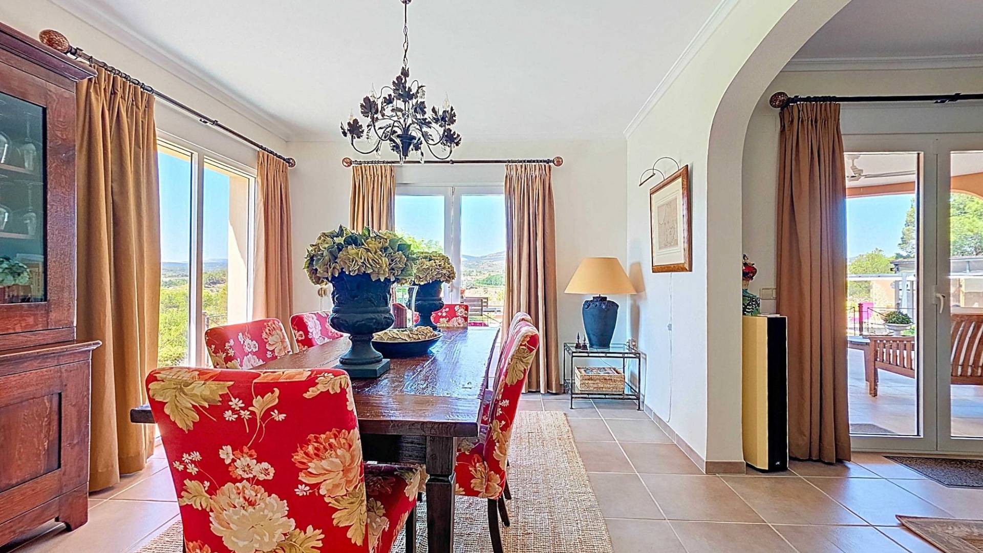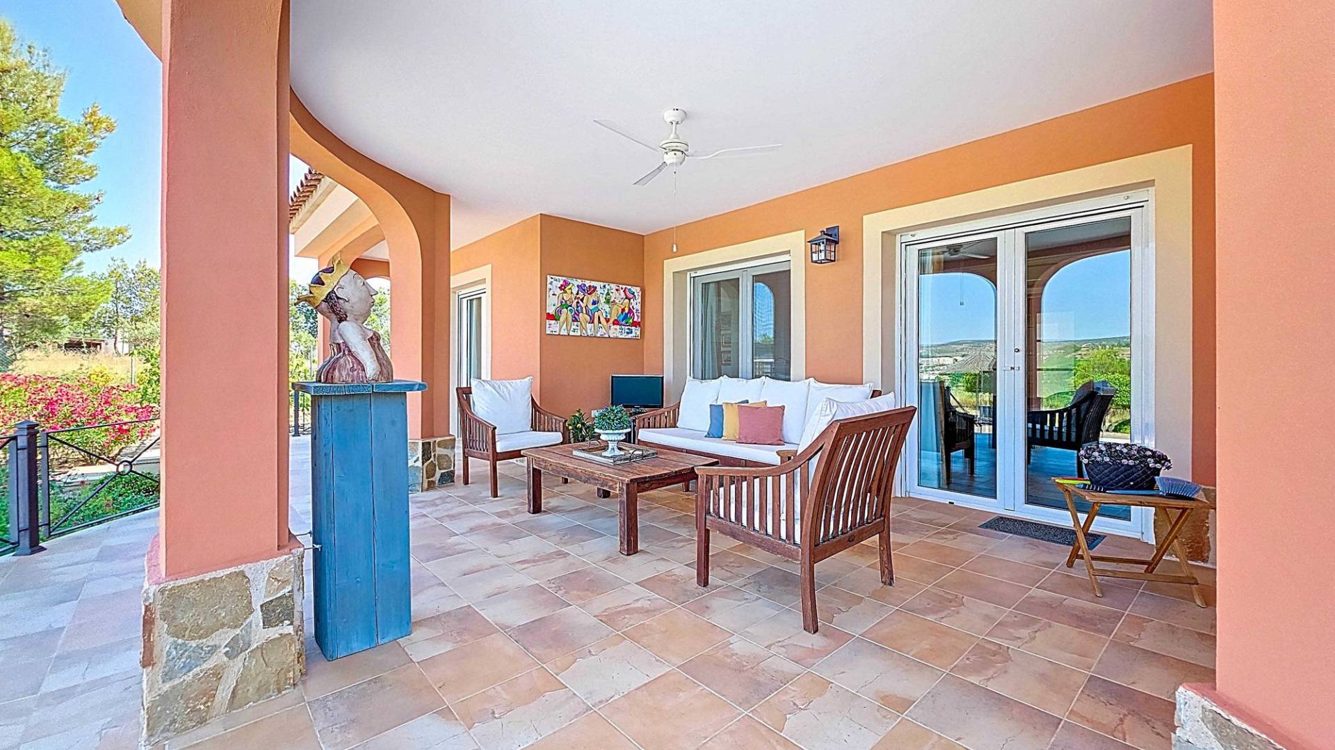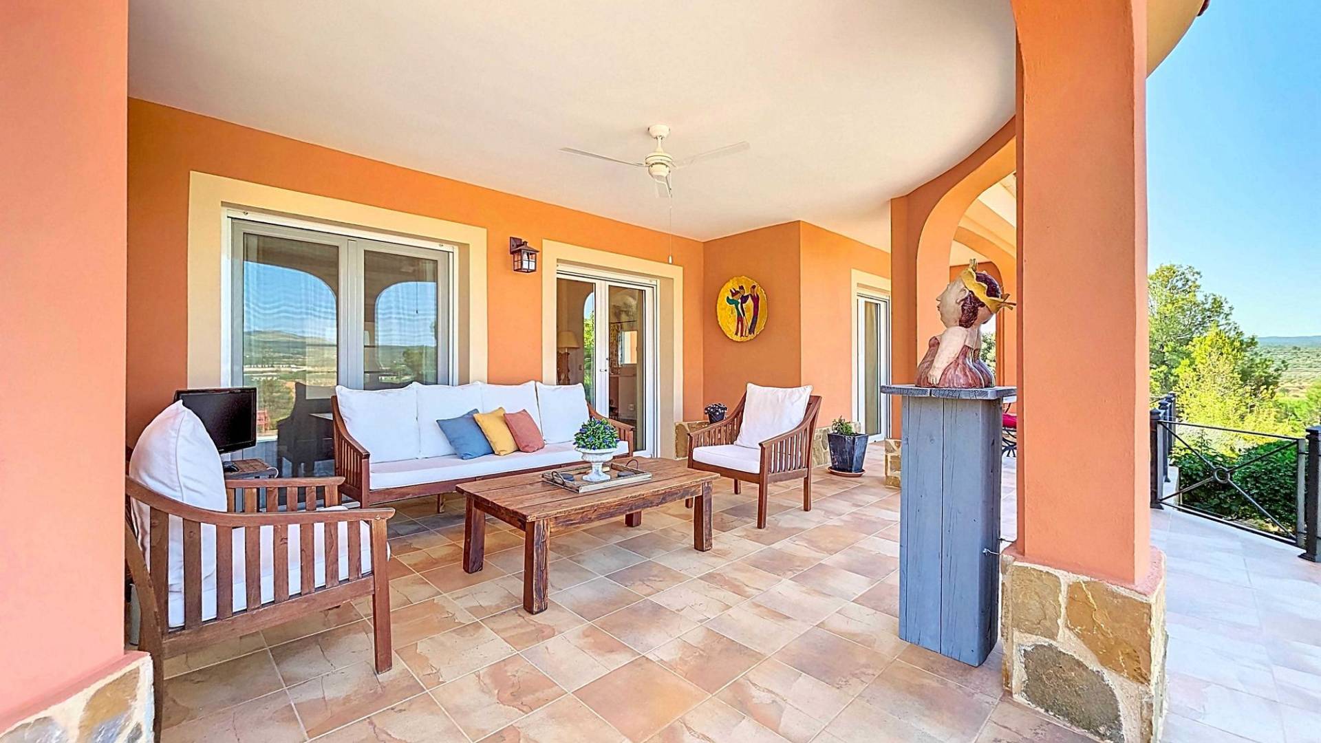 Villa Ayora Beautiful move-in-ready villa with a beautifully landscaped, private garden and fantastic views of the village of Ayora and the surrounding nature. Just a few minutes by car from Ayora lies this stunning villa. It was designed by the current owners, who clearly chose a high-quality finish. The villa is perfectly maintained and ready for new residents. Property Via the driveway, lined with almond trees on both sides, you reach the fenced part of the property. An electric gate provides access to the villa. The plot is situated slightly higher, offering stunning 360-degree views over the valley and the village. The garden around the house is attractively landscaped and meticulously maintained. Several terraces surround the villa, allowing you to enjoy the Spanish lifestyle in the sun or the shade. Or perhaps you prefer to relax with some local wine and tapas in the pergola, which is currently set up as a fantastic outdoor kitchen? Of course, there is also a swimming pool (5x10 meters). The Villa Ground floor: The spacious hallway provides access to all other parts of the villa: the living room, kitchen with adjacent utility room, a bedroom with en-suite bathroom, a storage closet, and a guest toilet. The staircase to the upper floor is also located in the hallway. The generous living room has double doors from the hallway and can also be accessed via the kitchen. Thanks to the many glass (double) doors leading to the terrace, the space receives beautiful natural light. The living room features a cozy central fireplace and air conditioning (hot/cold). There’s a separate, open area that can serve as a TV room, playroom, or home office. On the other side, there's another open area serving as the dining room — ideally located next to the spacious open kitchen. Next to the kitchen is a utility room with three cabinets and another room behind it that houses the technical equipment and provides extra storage space. The mentioned spacious bedroom has an en-suite bathroom and a separate toilet, air conditioning (hot/cold), and built-in wardrobes. First floor: Here you'll find a storage closet, a separate toilet, a large bathroom, and a spacious bedroom with built-in wardrobes and air conditioning (hot/cold). The bedroom gives access to a terrace with spectacular views. Features: Air conditioning Fireplace in the living room Underfloor heating (oil) throughout the villa Connected to mains electricity and water (with softener system) Windows fitted with shutters and insect screens Recently regrouted swimming pool Outdoor shower and toilet by the pool Carport attached to the villa and ample private parking Ayora Ayora is known as one of the most beautiful villages in Valencia. It is a lively and traditional village in the green surroundings of the Ayora valley. The area is rich in historical heritage, such as the castle and the church. Fancy a walk? Stroll through the medieval streets and admire several beautiful Renaissance-style buildings in the village. The surrounding nature also offers wonderful hiking opportunities. Or how about a relaxing day in the nearby thermal baths of Cofrentes, or a canoeing/rafting trip on one of the rivers? All amenities such as shops, restaurants, healthcare, leisure, and schools are available in Ayora. Alicante airport is 1 hour and 15 minutes away, and Valencia airport is 1.5 hours away. Interested in this stunning villa? Feel free to contact us. We’ll be happy to show you the property and arrange a viewing appointment. This property is listed exclusively, which means all documents have been checked in advance and everything is either in order or can be arranged.