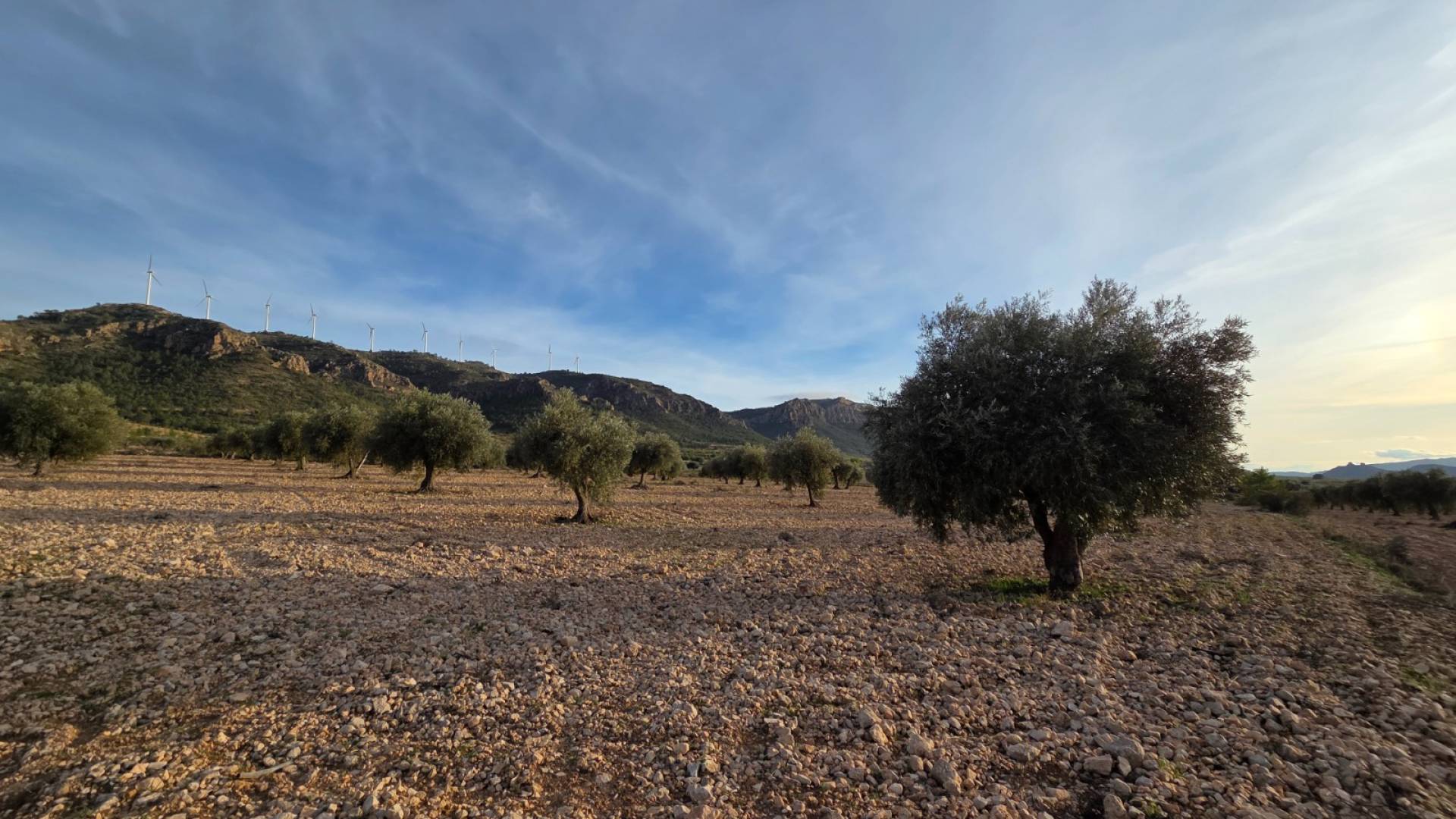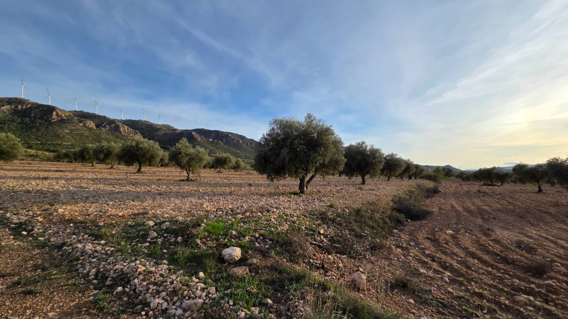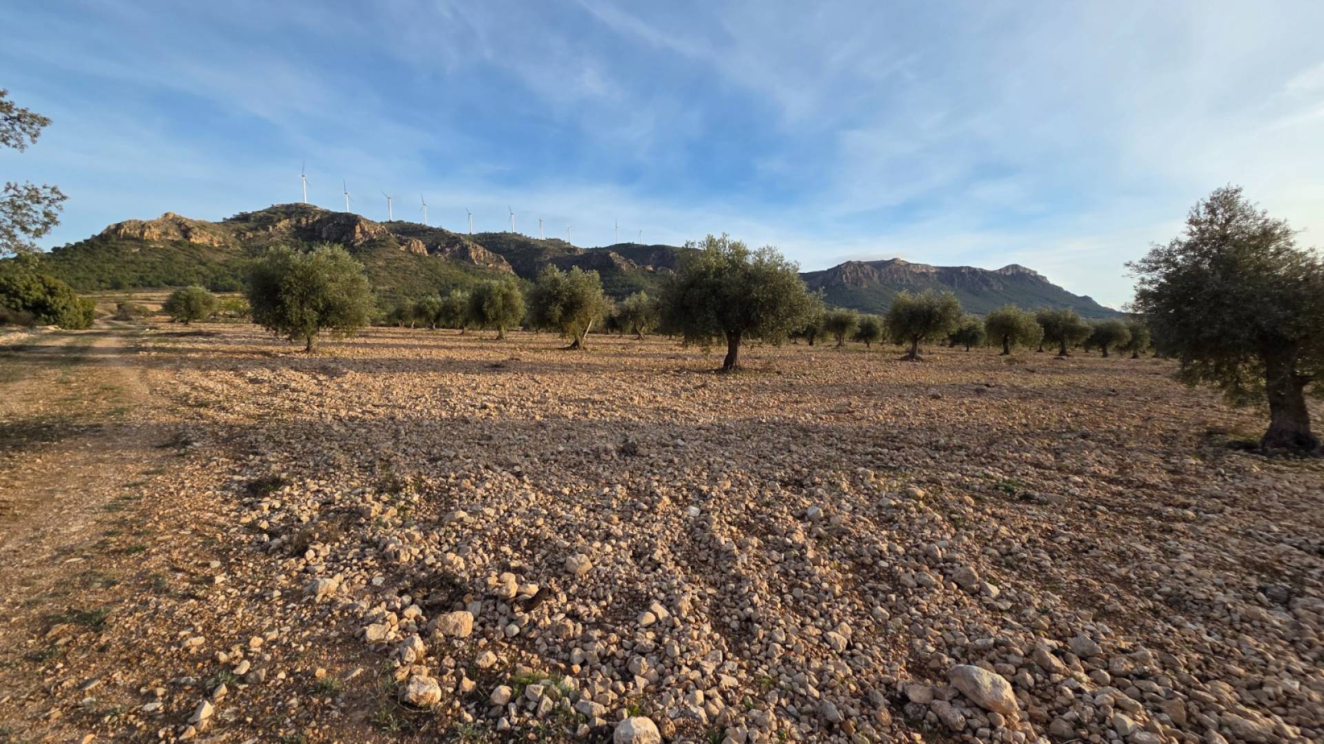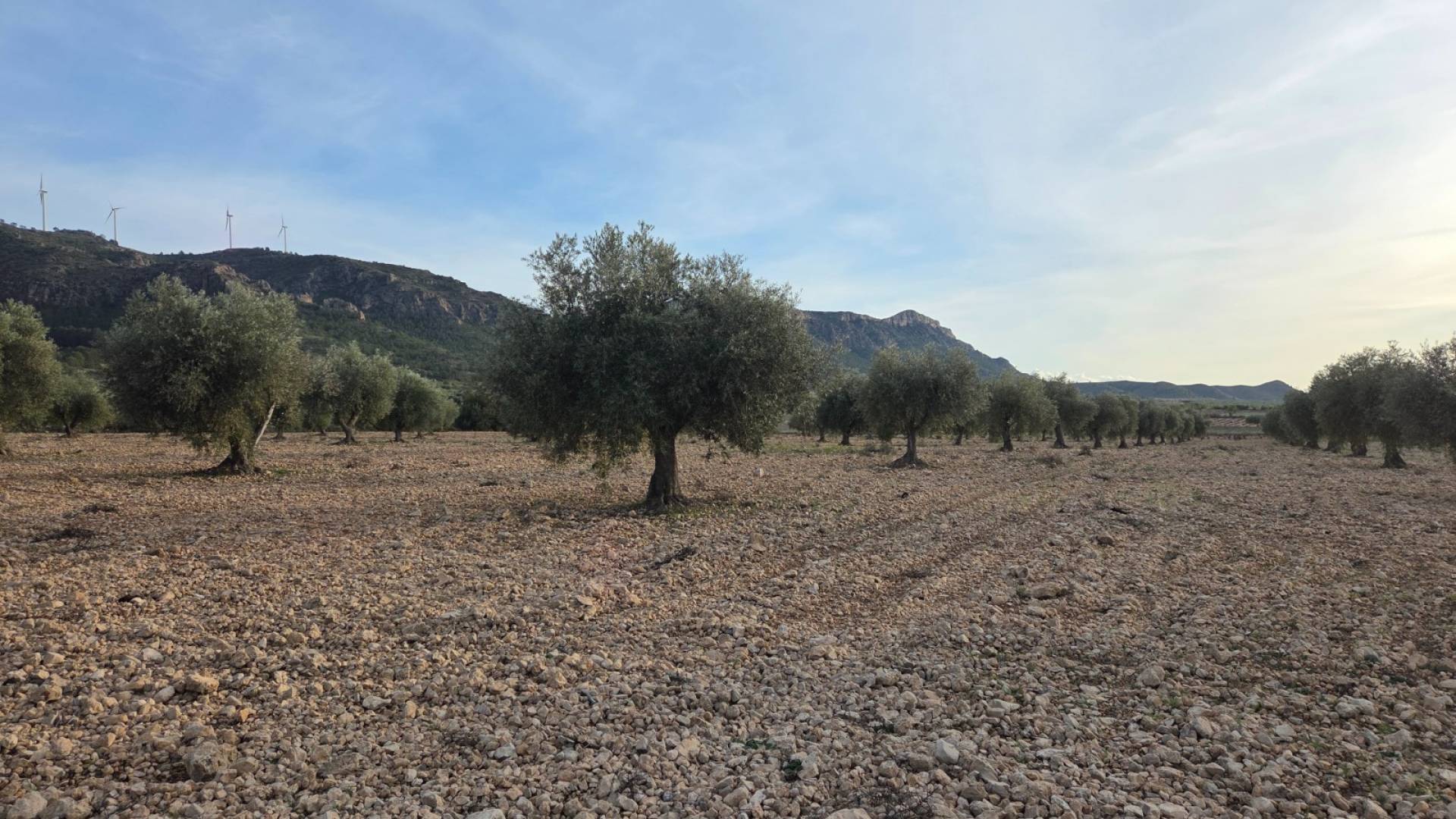 This olive grove located in the country side of Jumilla, Murcia offers beautiful views on the mountains and country side. Surrounded by olive trees, grape vines and almond trees. The plot is a little over 15 hectares (150.113m2). You can build a huge estate here with pool, garage, guest house and more! The plot has no electricity nor water connection, so you'd be fully off-grid. Please note: next to the plot there is a solar panel field, as shown on the drone picture.