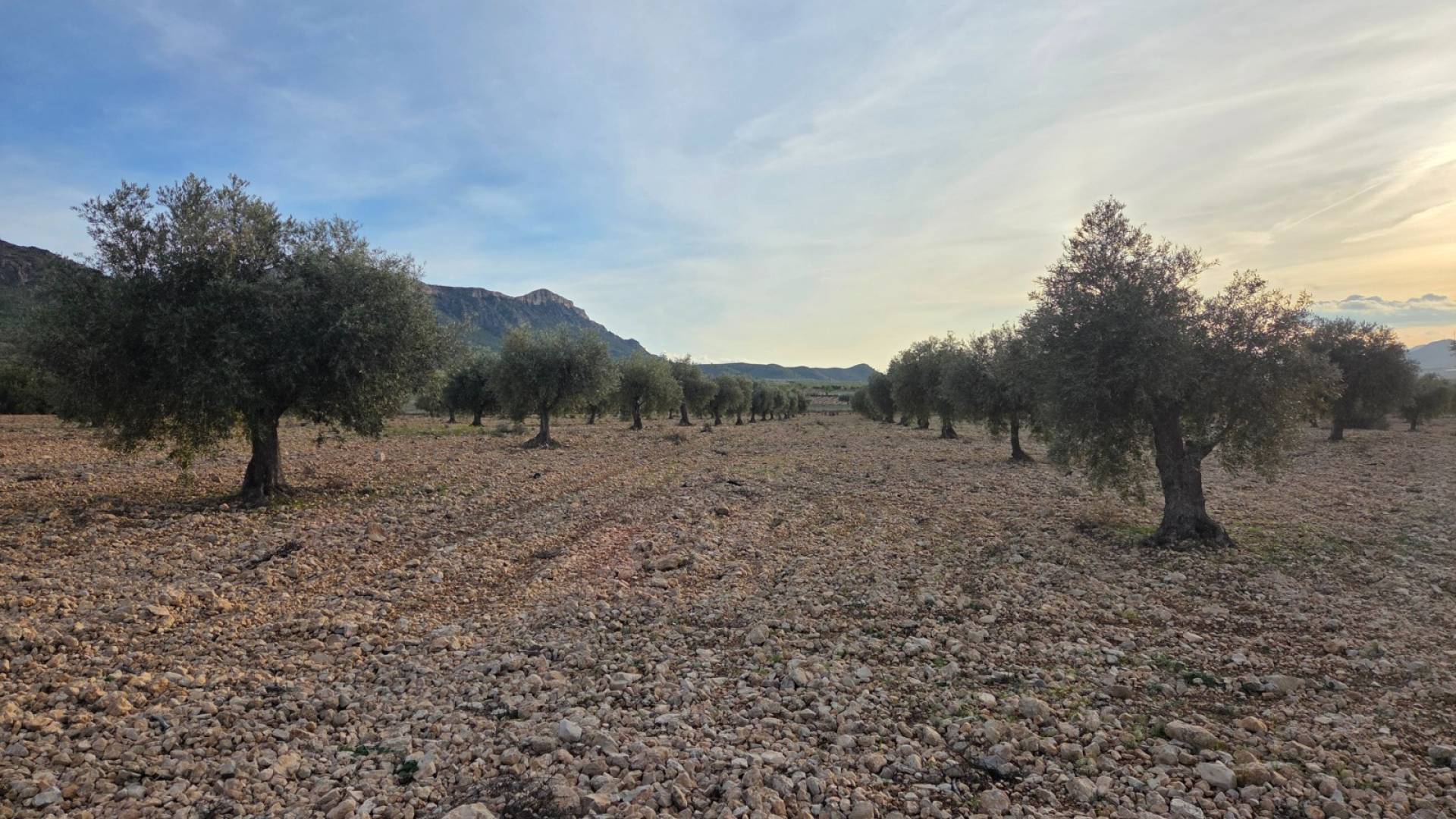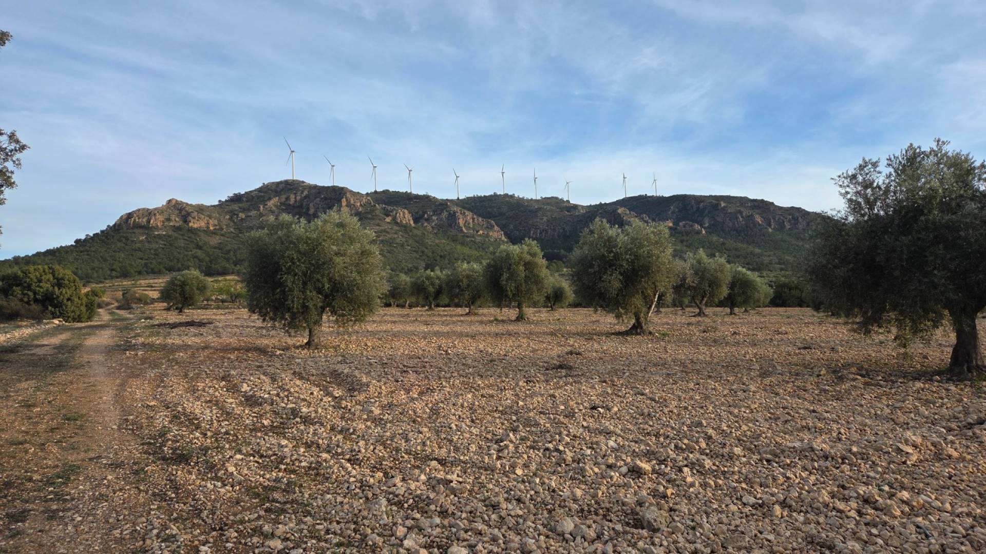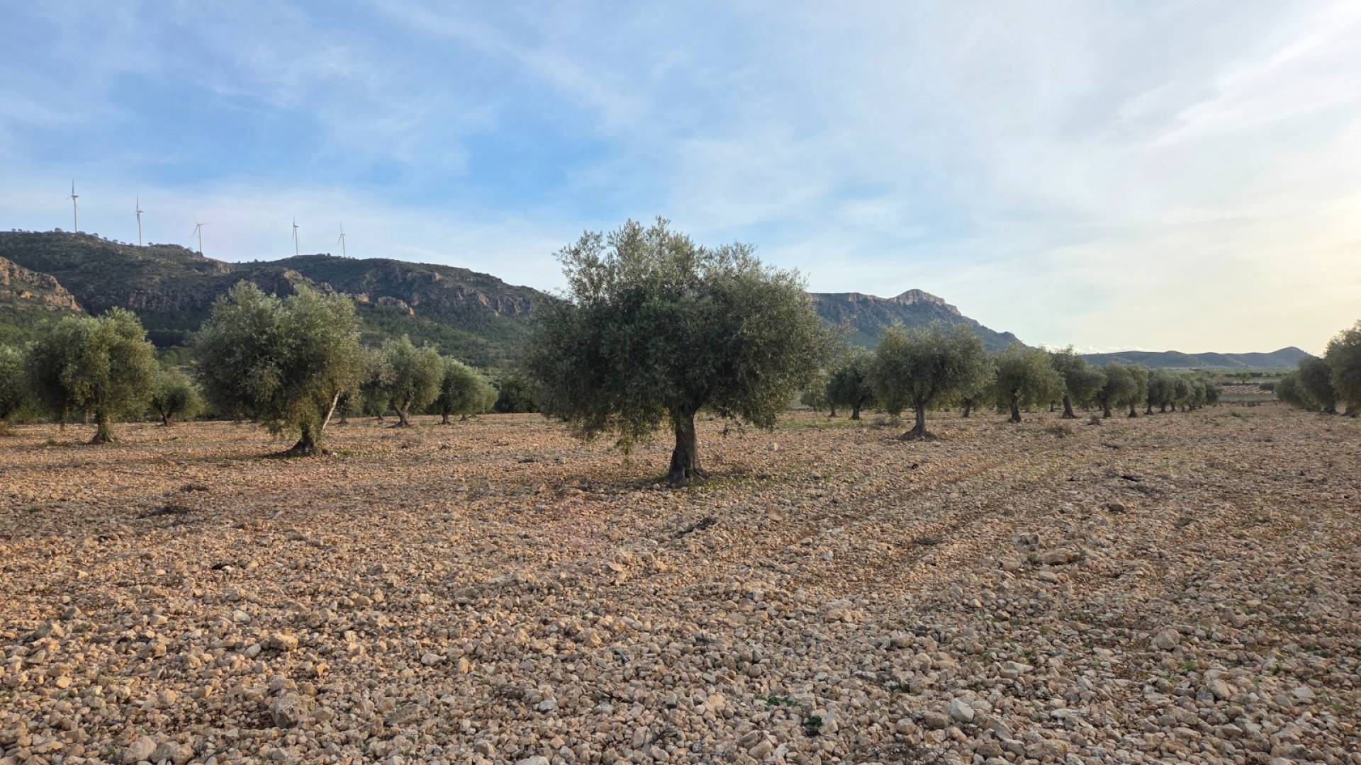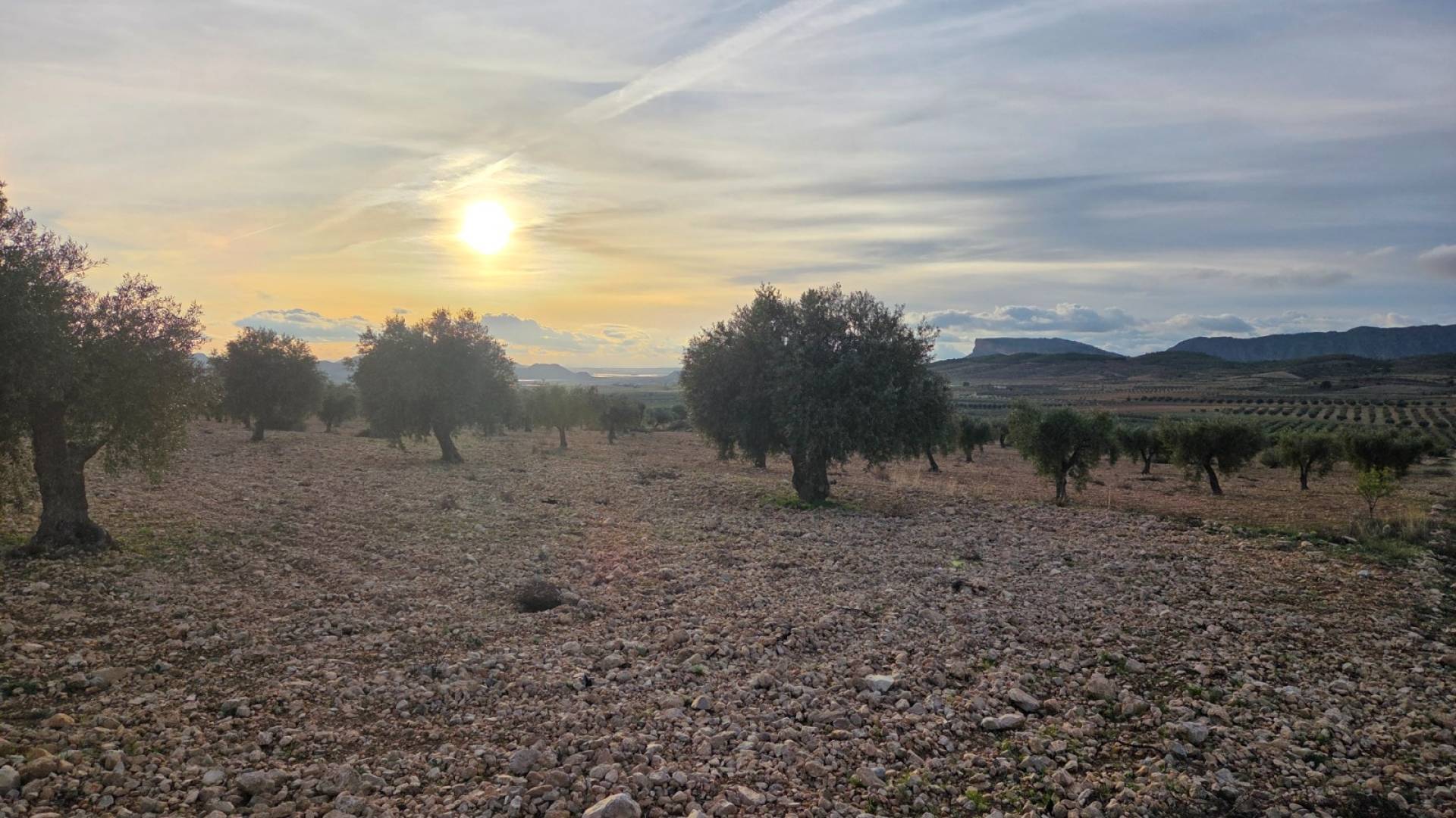 This olive grove located in the country side of Jumilla, Murcia offers beautiful views on the mountains and country side. Surrounded by olive trees, grape vines and almond trees. The plot is a little over 15 hectares (150.113m2). You can build a huge estate here with pool, garage, guest house and more! The plot has no electricity nor water connection, so you'd be fully off-grid. Please note: next to the plot there is a solar panel field, as shown on the drone picture.