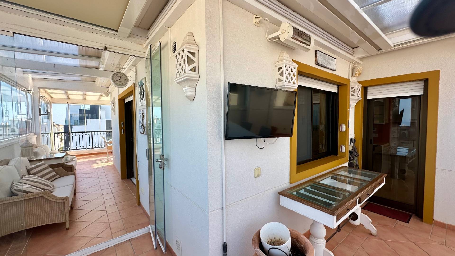 This unique and spacious penthouse in Guardamar del Segura offers stunning panoramic sea views and a delightful sense of luxury and comfort. The property features two spacious bedrooms, both with en-suite bathrooms. Adjacent to the bedrooms is a covered terrace, providing extra privacy and a lovely place to relax at any time of day. In the complex you will find a gymmand a wellness with indoor pool and sauna. The fully equipped kitchen is a real eye-catcher for cooking enthusiasts. With extra features such as a built-in fryer and griddle, this kitchen is not only practical but also a place where cooking becomes a true pleasure. Thanks to the spacious layout, high-quality finish, and impressive views, this penthouse is ideal as a permanent residence, luxury holiday home, or interesting investment on the Costa Blanca. Features Penthouse Guardamar del Segura Panoramic sea view 2 bedrooms 2 en-suite bathrooms Covered terraces Fully equipped kitchen Built-in fryer and grill plate Luxurious appearance Spacious layoutPrivat indoor parking GymWellness Guardamar del Segura area Guardamar del Segura is a popular coastal town on the Costa Blanca, known for its vast sandy beaches, dunes, nature reserves, and charming promenade. The town combines authentic Spanish character with all daily amenities such as shops, restaurants, cafes, and a lively center. The surroundings are ideal for those wishing to enjoy sun, sea, nature, and relaxation, as well as for those who prefer to be active. In the immediate vicinity, you will find various golf courses, walking routes, cycle paths, and marinas. Furthermore, Guardamar is conveniently located in relation to other popular places such as Ciudad Quesada, Torrevieja, and Alicante. Distances Sea / beach: approx. 1 km (depending on exact location) Center Guardamar del Segura: approx. 1 km Supermarket: approx. 1 km Restaurants and amenities: a short distance away Alicante Airport: approx. 30 km / 25-30 minute drive Murcia Airport: approx. 75 km / 50-minute drive Golf courses: approx. 10-15 km Marina: approx. 2 km